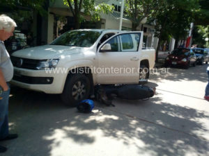 El accidente se produjo cuando Juan José Goedelmann que descendía de su camioneta, una Amarok, no advirtió el paso de la moto que lo hacía a su lado y abrió la puerta.