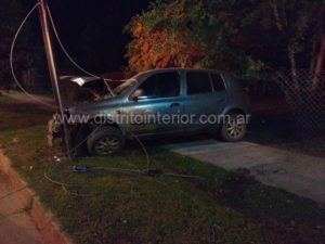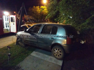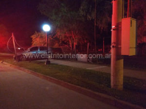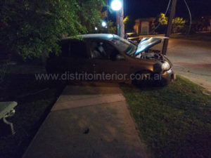 El rodado, un Renault Clio, terminó sobre la vereda «clavado» contra un riel que hace de sostén del transformador que se encuentra sobre Alvear, a metros de la estación del ferrocarril.
