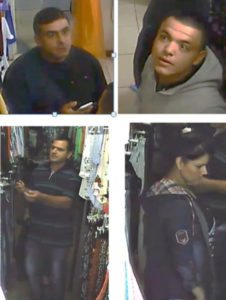 Las personas que se visualiza en las fotografías ingresan a los locales y mientras dos de ellos distrae al vendedor los otros dos sustraen las prendas de vestir del local, colocándolas en bolsas acondicionadas para que se inhiba la alarma de las prendas, para luego darse la fuga sin que el vendedor se percate de la maniobra delictiva.