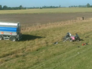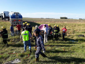 Como consecuencia, el auto es arrastrado aplastado entre los dos camiones y arrastrado hacia una de las banquinas, pereciendo en el acto dos de los ocupantes, Elsa Cerutti y Juana Crespo, que viajaban en el asiento trasero, mientras que el conductor, Matias Rizzardi y su acompañante, Lila Galdos, resultaron con heridas por lo que fueron trasladados al Hospital de Pehuajó.