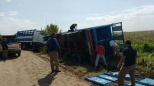 Cerca de las 10:00 de la mañana en el camino que se encuentra entre la entrada a Sundblad y el canal que conduce al agua del Río V, un camión propiedad de Daniel Pires transitaba cargado de animales vacunos.
