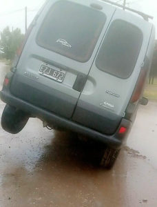 Esta tarde cerca de las 14:00 hs. Carlos Gonzales, mecánico, se dirigía a realizar una asistencia cuando imprevistamente, el rodado en el que se movilizaba, una Renault Kangoo perdió una rueda dentro de un pozo.