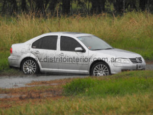 Un Volkwagen Bora que viajaba hacia nuestra ciudad salió de la cinta asfáltica despistándose hacia la banquina, alcanzando el préstamos que se encuentra inundado.