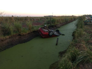 GRACIAS A QUE EL NIVEL DE AGUA ES MUCHO MENOR A MESES ANTERIORES LOS OCUPANTES PUDIERON SALIR POR LA LUNETA TRASERA SIN PROBLEMAS.-