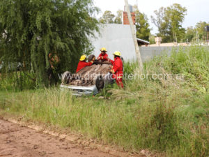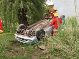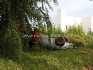 Del auto con las cuatro ruedas hacia arriba, el conductor pudo salir por sus propios medios, visiblemente alterado, reaccionando ante la presencia de los efectivos policiales que se hicieron presentes.