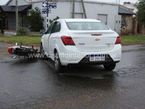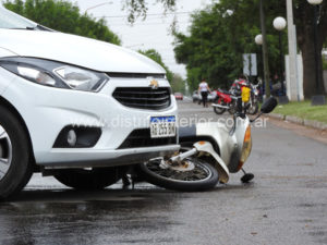 Choque entre una moto y un auto frente a la Plazoleta del Rotary