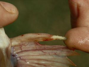 Hay que tener cuidado al manipularlos ya que sus dos aletas pectorales y la dorsal tienen su primer «rayo» muy osificado y agudo lo que comunmente es conocido coma púa y al tener contacto con ellas suelen producir heridas muy dolorosas. (Fuente extremo Litoral)