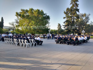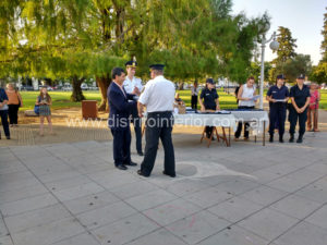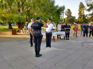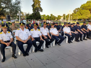 Este viernes por la tarde efectivos y autoridades de toda la Departamental de trenque Lauquen se dieron cita en el centro de la Plaza Principal de nuestra ciudad. Los anfitriones fueron el intendente Eduardo Campana, a quien acompañó su par de América, Javier Reynoso, el Secretario de Seguridad Gustavo Santillán, el Jefe Departamental Crio. Mayor Fabio Zaratiegui y el Jefe Comunal de nuestra ciudad Crio. Insp. Darío Valle.