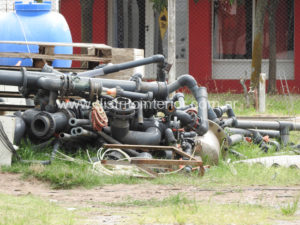 Se desmonto parte del galpón bajo el cual se encontraba y se aprecian caños y otros elementos apilados en un costado.
