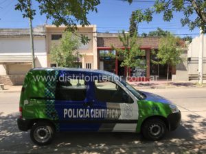 En estos momentos la Policía Científica trabaja en el levantamiento de rastros en el local dedicado a la veta y reparación de celulares y otros elementos tecnológicos, ubicado en calle Moreno, al lado de la Casa de la Cultura.