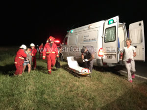 Los villeguenses fueron trasladados por Bomberos hacia el Hospital dando prioridad a los niños, mientras que al camionero y su acompañante por la ambulancia del nosocomio, ambos golpeados, pero visiblemente lúcidos, aunque la mujer acusando fuerte dolor en su pecho.