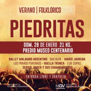 El domingo 28, el Verano Folklórico retomará su agenda realizándose en Piedritas y Coronel Charlone.