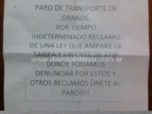 Los manifestantes explicaron a Distrito Interior que alcanza exclusivamente a los transportes de cereales, los que al llegar a este punto deberán detener su marcha o regresar al lugar de origen.
