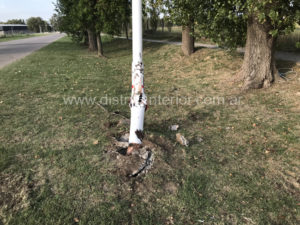 Al llegar a metros de la curva en la que se encuentra el ingreso al Parque Industrial sobre la Avenida Chassaing Sur, la tolva se desprendió, tomando hacia la derecha para dar contra una de las columnas del alumbrado público a la que se había dotado hace poco tiempo de iluminación LED.