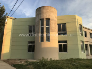 A casi una década de tiempo transcurrido el gigante ya tiene todas las aberturas colocadas y en su interior se observan los últimos retoques de material seco que va formando el cielorraso en algunas de sus secciones, mientras que por fuera, la pintura, casi terminada, lo ha hecho entrar en cuenta regresiva para que las actuales y futuras generaciones de banderloneses desarrollen allí las actividades para las que fue construido.