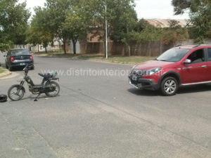 Alrededor de las 12:30 del mediodía, chocaron un auto y una moto en la esquina de Sarmiento y Paso de nuestra localidad.