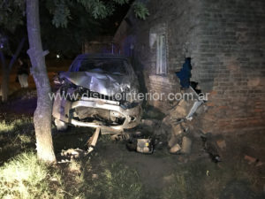 ESTA MADRUGADA: Un auto se incrustó en una casa, los ladrillos cayeron sobre el propietario que dormía