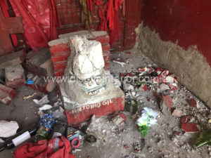 Al parecer con una masa, destruyeron todo lo que pudieron; desde la imagen grande del «santo» hasta las paredes.