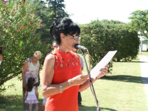Luego de izar el Pabellón Nacional y entonar las estrofas del Himno Nacional Argentino, se dirigió a los presentes la Directora de la Escuela Primaria Nº 35 “Martín Fierro”, Elva Haydee Torres: