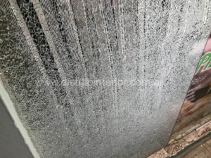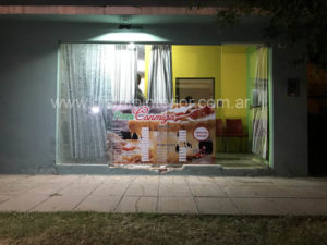 Otro de los grandes vidrios que le dan vista a su local resultó en el estado que se lo observa, sin más respuesta que la nada misma.