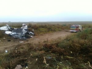 El accidente ocurrió a las 15:00 en un campo ubicado dentro de la geografía de la provincia de La Pampa a metros del meridiano V que la separa de la provincia de Buenos Aires.