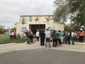 Identificados en su mayoría con el naranja, color que representa al bienestar, unas cincuenta personas recorrieron las calles que rodean el barrio donde funcionan cada semana.