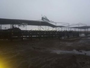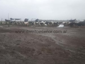 Fue precisamente en este último donde el fenómeno causó serios daños en un tambo perteneciente al establecimiento rural El Indio donde parte del techo de chapa fue levantado y retorcido, afortunadamente sin consecuencias para los animales.