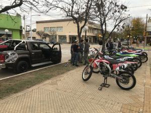 En la Plaza Principal pilotos locales e integrantes de la Comisión organizadora se encuentran vendiendo entradas y exhibiendo algunas de las motos que estarán en el largador.