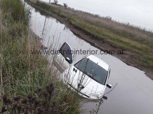 El rodado luego de recorrer unos metros por la banquina terminó dentro del zanjón con agua; pese a ello, el conductor y único ocupante resultó ileso.