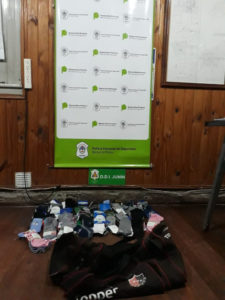 Interviene la Unidad Funcional de Instrucción y Juicio Especializada en Estupefacientes, del Departamento Judicial de Junín, a cargo del Sr. Agente Fiscal, Dr. Esteban Lopardo, como asi también se incautaron 79 pares de medias dama/caballeros y se labro acta de infracción por venta ambulante con intervención del Juzgado de Faltas Municipal, de acuerdo a lo informado a Distrito Interior por el comisario Renato Lavaselli, jefe de la Policía Comunal de Gral. Pinto.