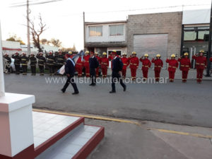 Acto seguido se realizó el izamiento de la Bandera Nacional, la de la Pcia. de Buenos Aires y la de Bomberos y luego de entonar las estrofas del Himno Nacional Argentino se hizo un minuto de silencio en conmemoración al personal fallecido.