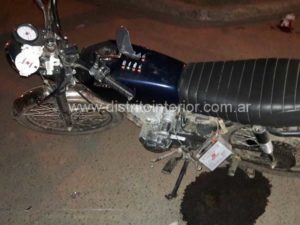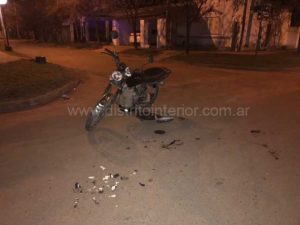 Este domingo pasadas las 21:00 hs. un automóvil y una moto protagonizaron un violento choque en la intersección de las calles Fabián Siri y Azcuénaga a escasos metros del ingreso al Parque Municipal.