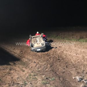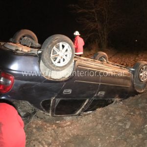 Se trata de un Chevrolet Corsa, el que terminó volcado en la baquina con sus cuatro ruedas hacia arriba.