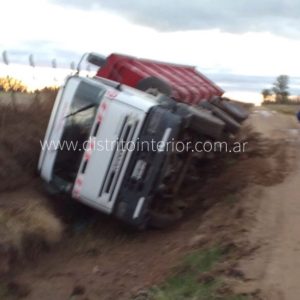 Esta tarde alrededor de las 17:45 hs. el camión Iveco que circulaba por una de las bajadas a la localidad perteneciente al partido de General Villegas, tirando una batea, se desvió hacia un costado del camino cayendo dentro del zanjón volcánico hacia su derecha.