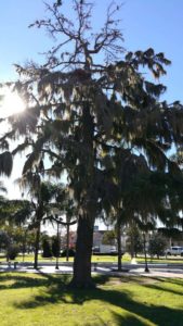 Al respecto, la mencionada repartición comunicó que dicho árbol presenta un estado de salubridad irreversible por la presencia avanzada en casi la totalidad de la copa del ejemplar de un musgo nominado Tillandsia usneoides, que la ha invadido casi por completo, entrañando riesgo para el resto de la forestación circundante.