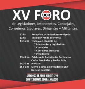 Legisladores prvinciales y nacionales, al menos cuatro intendentes, concejales, consejeros escolares, dirigentes y militantes compartirán diferentes actividades, dirigirán la palabra las autoridades partidarias, Carlos Fernandez y Sandra París.