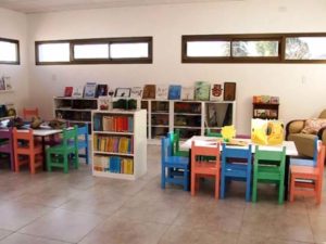 La nueva sede consta de dos plantas: en la inferior están ubicados los anaqueles que contendrán los volúmenes a disposición del público asociado, sala de lectura, área digital, depósito y sanitarios, y en la superior el espacio dedicado a los niños, con adecuado mobiliario para los pequeños lectores y el relato de cuentos. También en la planta alta está ubicada la sala de conferencias, proyección, debates y otras actividades que desarrolla habitualmente la institución comunitaria.