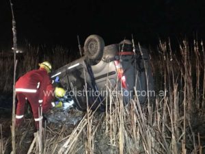 ESTA MADRUGADA: Una pareja se accidentó al volcar con su vehículo en la ruta 33