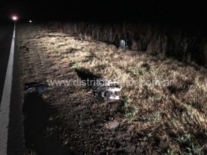El accidente tuvo lugar a las 5:30 hs. cuando dos personas que viajaban en dirección General Villegas – Piedritas a bordo de una Renault Kangoo, luego de impactar a un perro que se cruzó la ruta, volcaron sobre la banquina derecha.