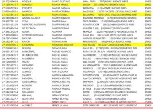 Entre los nombres surgen el de Roberto Maruri ($ 50.000), Edgardo Ramón Belaustegui ($ 38.000), Carlos Gariboldi ($ 16.000), Nancy Liliana Alvarez ($ 25.000), María Cristina Di Pardo ($ 38.000), Horacio Daniel Solis ($ 38.000), entre otros.