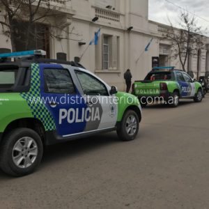 Este mediodía Andrea Espinosa, conocida como Celeste, se encadenó junto a una de las escaleras que conducen a la planta alta del Palacio Municipal de General Villegas.
