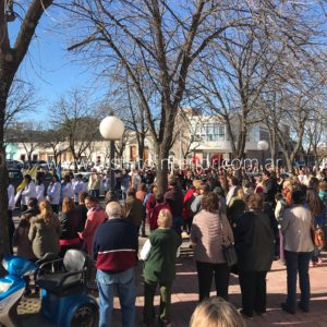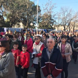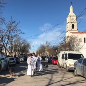 La columna de fieles partió de la parroquia a las 15:15 para peregrinar alrededor de la Plaza Principal venerando a la Madre para luego regresar al mismo lugar donde se oficiará la misa y luego se servirá chocolate con torta en el frente del templo, como se hace cada año.