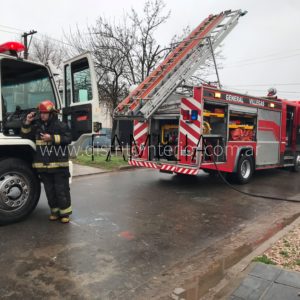 El incendio en la vivienda que se encuentra en parte posterior y lateral del local se produjo por el contacto del caño de una salamandra con el cielorraso el que se vio afectado en una superficie de aproximadamente cuatro metros por dos.