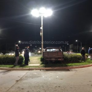 Con las consecuencias materiales a la vista (no hubo heridos), los rodados quedaron uno arriba del cantero que forma la rotonda y el otro sobre Carrozzi.