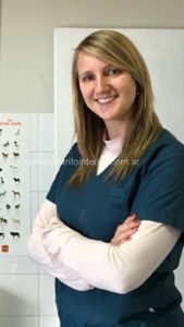 En esas condiciones la perra fue llevada hasta la ciudad de Ameghino donde la aguardaba Daiana Van Der Wekken (foto), veterinaria de «Veterinaria Norte» quien hoy dialogó con Distrito Interior comentando los pasos que siguió.