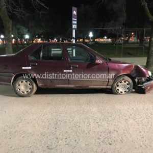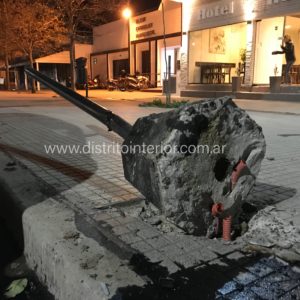 El auto, un Renault 19 era conducido por un joven de 20 años, cuyos datos filiatorios no trascendieron, salvo que vive en nuestra ciudad, cuando inexplicablemente subió a la vereda luego de una maniobra bruza llevando por delante la farola que se encuentra frente al hotel Ranquel, produciendo los daños que se aprecian tanto en el rodado como en el elemento en cuestión, sin consecuencias para el conductor.