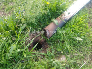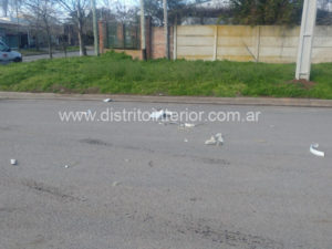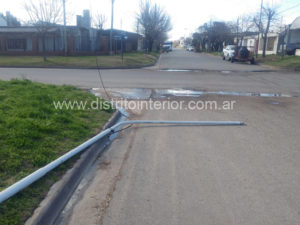 La imagen es de la calle Luis Cardín y Alberti. El viento hizo caer al piso una de las columnas de hierro que estaba corroída en su base. Producto de ello se rompió el cabezal dejando a ese sector sin luz hasta su reparación.