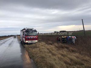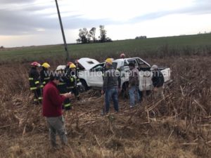 Volcó una camioneta entre Bunge y Piedritas, el agua en el asfalto pudo ser la causa