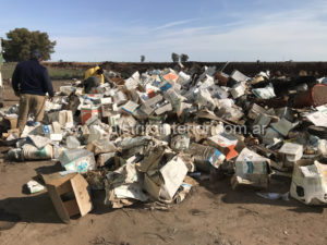 La última inundación había visibilizado el problema surgido con este material dado que muchos quedaron a la deriva producto del agua que estuvo retenida en el lugar. Cuando ésta bajo y el terreno volvió a la normalidad se retomó la tarea del acopio para su posterior traslado, lo que está sucediendo en esta jornada.