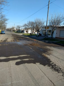 El triple choque que esta mañana se produjo debido a la presencia de pozos originados por el flujo de agua en el medio de la calle, hizo que los operarios los taparan en la urgencia con tierra.
